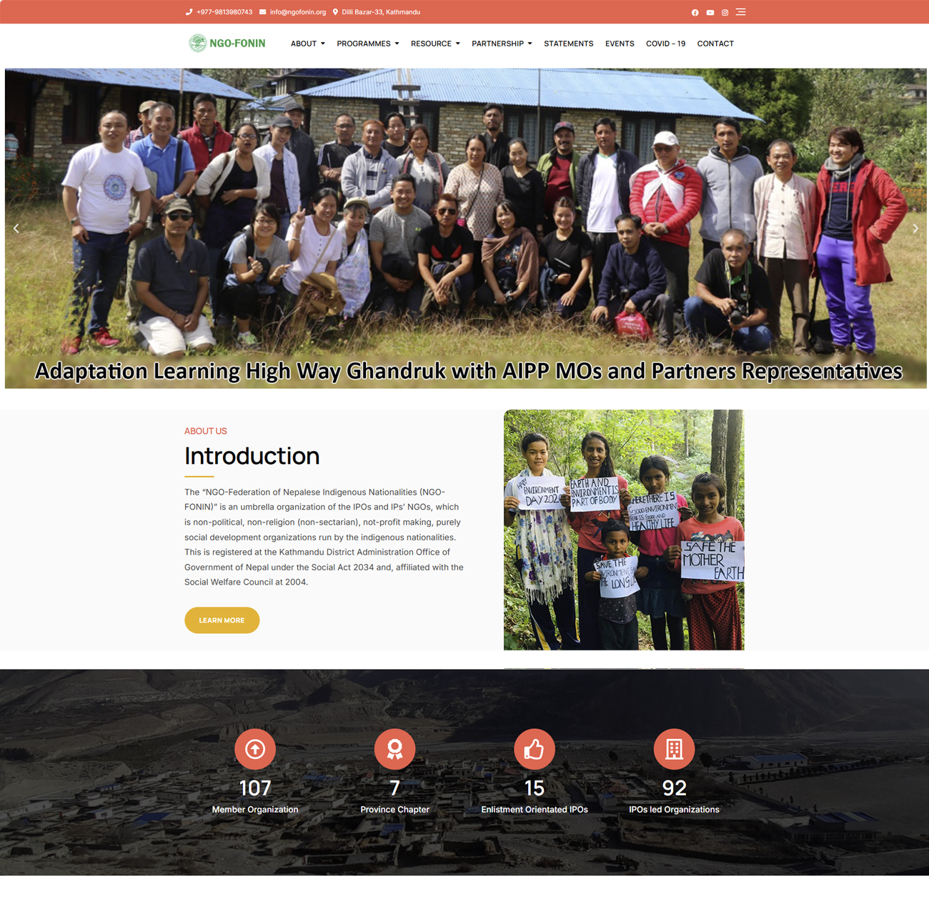 The “NGO-Federation of Nepalese Indigenous Nationalities (NGO-FONIN)” is an umbrella organization of the IPOs and IPs’ NGOs, which is non-political, non-religion (non-sectarian), not-profit making, purely social development organizations run by the indigenous nationalities.